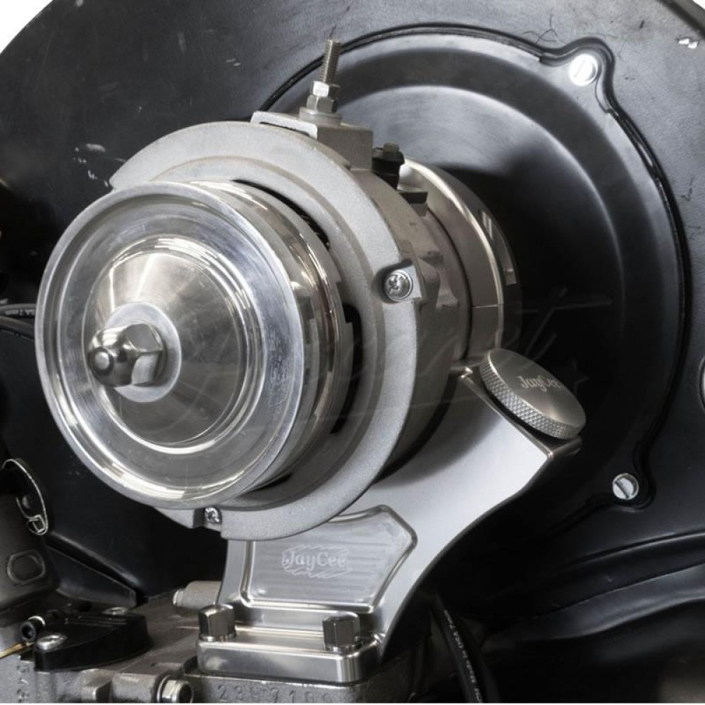 Este soporte JayCee es compatible con la mayoría de los alternadores de 12V que tengan un diámetro de entre 103 y 105 mm. Su diseño integra una abrazadera de sujeción, boca de llenado de aceite e incluye toda la tornillería de montaje en acero inoxidable.