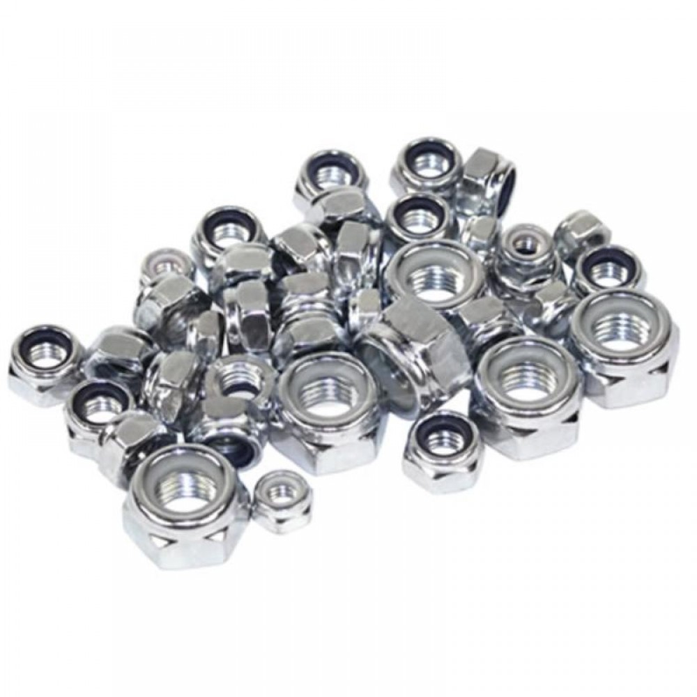 Juego de 40 tuercas con freno necesarias para un motor.